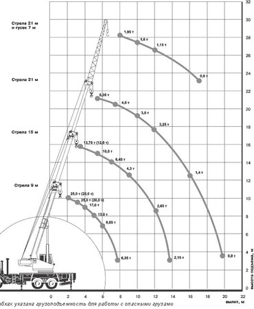 Грузоподъемность стрелы: 25 т