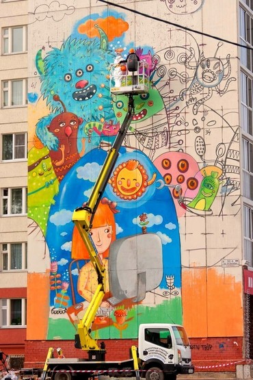 Оборудована система подачи воды (краски) в корзину;