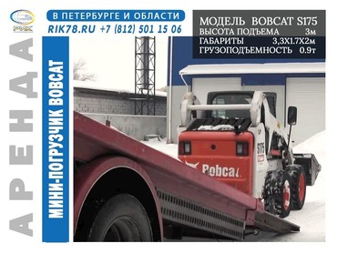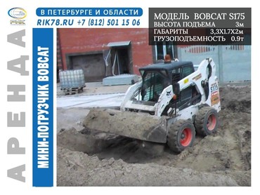 Предлагаем в аренду организациям и частным лицам мини-погрузчик Bobcat S175 грузоподъемностью 0,9 тонн с доставкой в Санкт-Петербурге и ближайших пригородах. Работа в труднодоступных для большой техники местах. Заезд на дачные участки. Работа внутри помещений. Планирование участка. Разборка старых кирпичных стен с помощью гидромолота. Снос заборов. Быстрая доставка автоэвакуатором. Минимальная смена 8 часов, в которых 1 час доставки техники автоэвакуатором на территории Санкт-Петербурга до КАД или 2 часа доставки за КАД. Заказы принимаются от организаций и частных лиц. Возможные варианты оплаты – с НДС, без НДС или банковской картой.