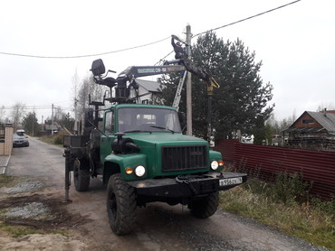 Гараж в г.Гатчина, ямобур вездеход, полный привод, 6*6, выносная стрела-8 м.шнеки: 200 мм., 350 мм., катюша для перевозки длинных брёвен, опор лэп, люлька для высотных работ Три в одном