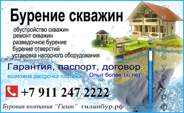 Оказываем полный комплекс услуг по бурению и оборудованию водозаборных скважин в Волховском, Киришском, Бокситогорском, Кировском, Тихвинском, Подпорожском районах Ленинградской области, а также в Вологодской и Новгородской областях: от определения оптимального места заложения скважины на воду для обеспечения водой до ввода её в эксплуатацию и сантехнической обвязки. Так же мы производим ремонт, очистку скважин и др. буровые работы. Гарантия, паспорт скважины, договор. Опыт работы с 2000 г.