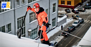 Наши специалисты являются высококвалифицированными альпинистами с большим опытом работы. Только профессиональный подход к делу с соблюдением всех требований техники безопасности: перед началом снегоуборочных работ подбирается наиболее подходящее место для сброса снега, огораживается территория и в максимально сжатые сроки производится очистка кровли от снега и наледи, весь сброшенный снег и лёд вывозится с территории после выполнения очистки кровли от снега и наледи. Все работы проводятся только квалифицированными специалистами с современным профессиональным оборудованием и страховочным снаряжением.